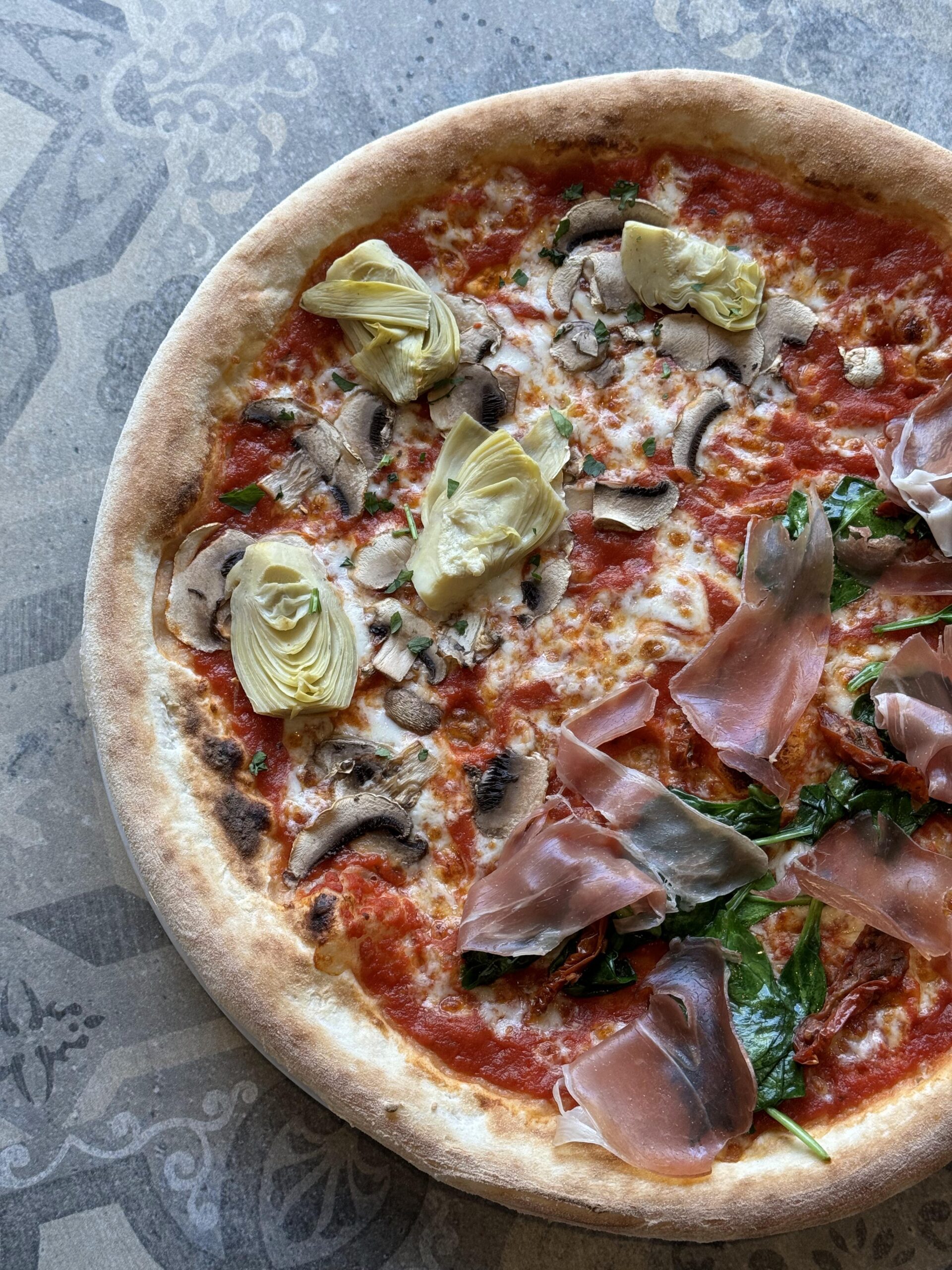 - Nonsolo: Szynka parmeńska, pieczarki, mozzarella, olowa czuoskowa