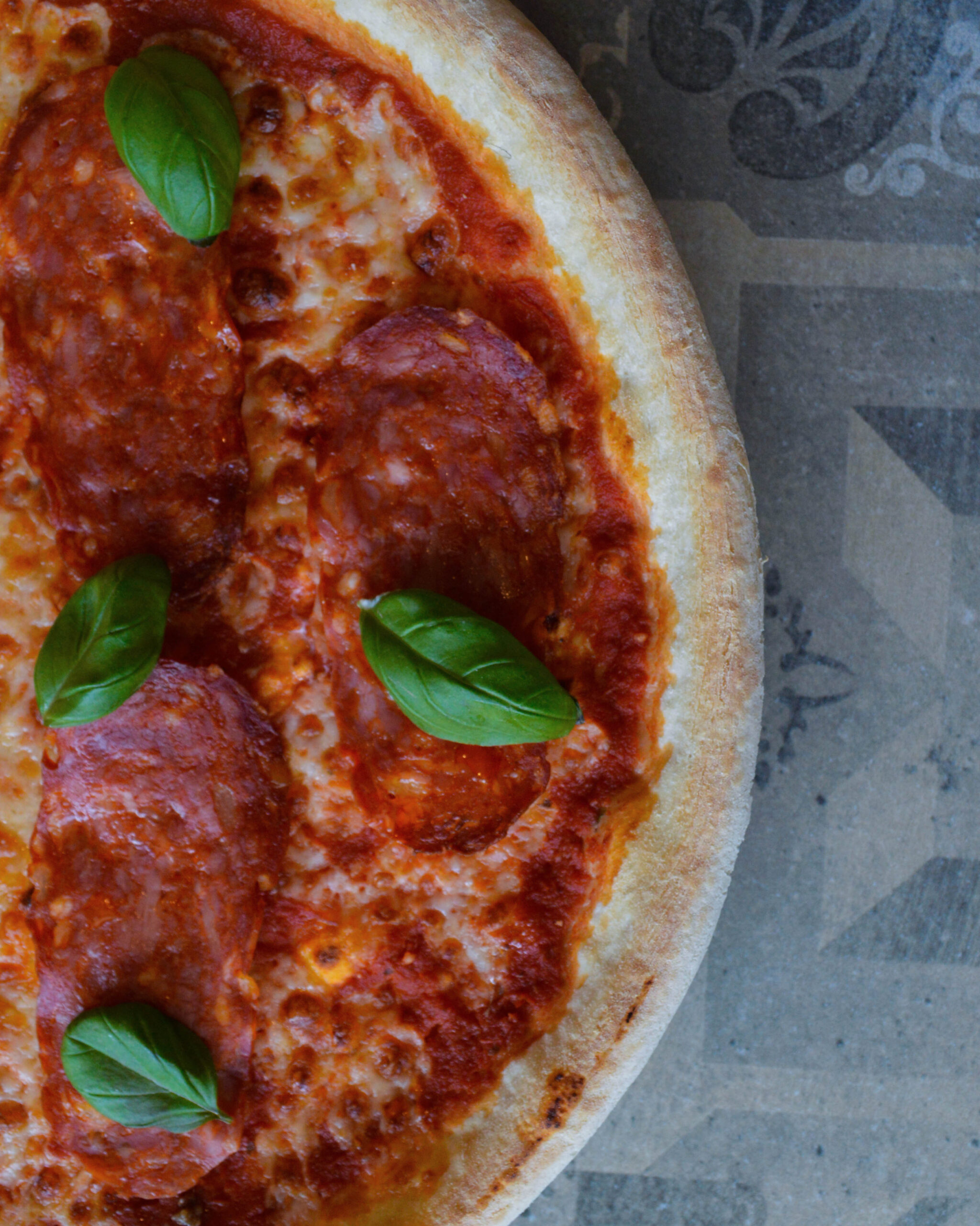 - Margherita: Sos pomidorowy, mozzarella, świeża bazylia.